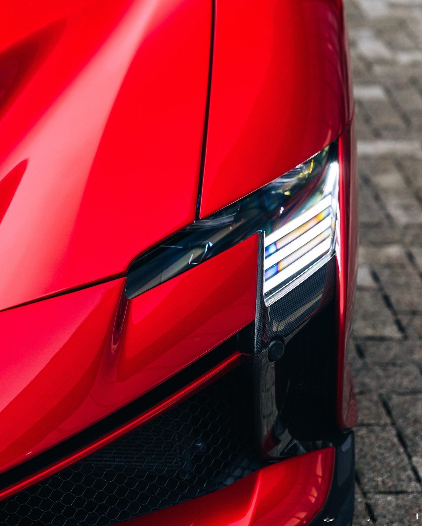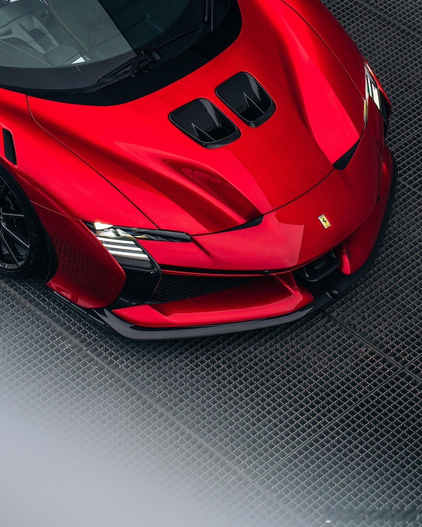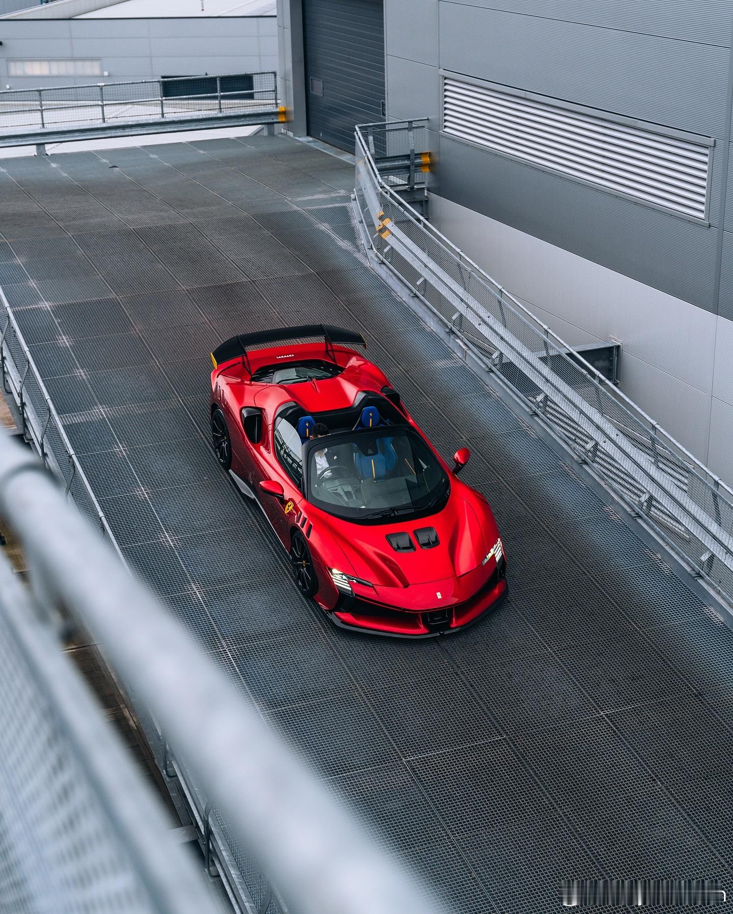 外观配色为Rosso Magma,尾翼的薄边以及两侧选择了黄色细节点缀,内饰则为Blu Elettrico Alcantara,此外,外观上还选择了碳纤维轮毂和漆盾。这样的选配基本上是如今法拉利限量款最为保险的选配方式了。交付于位于英国伦敦的HR Owen Ferrari。图片来自