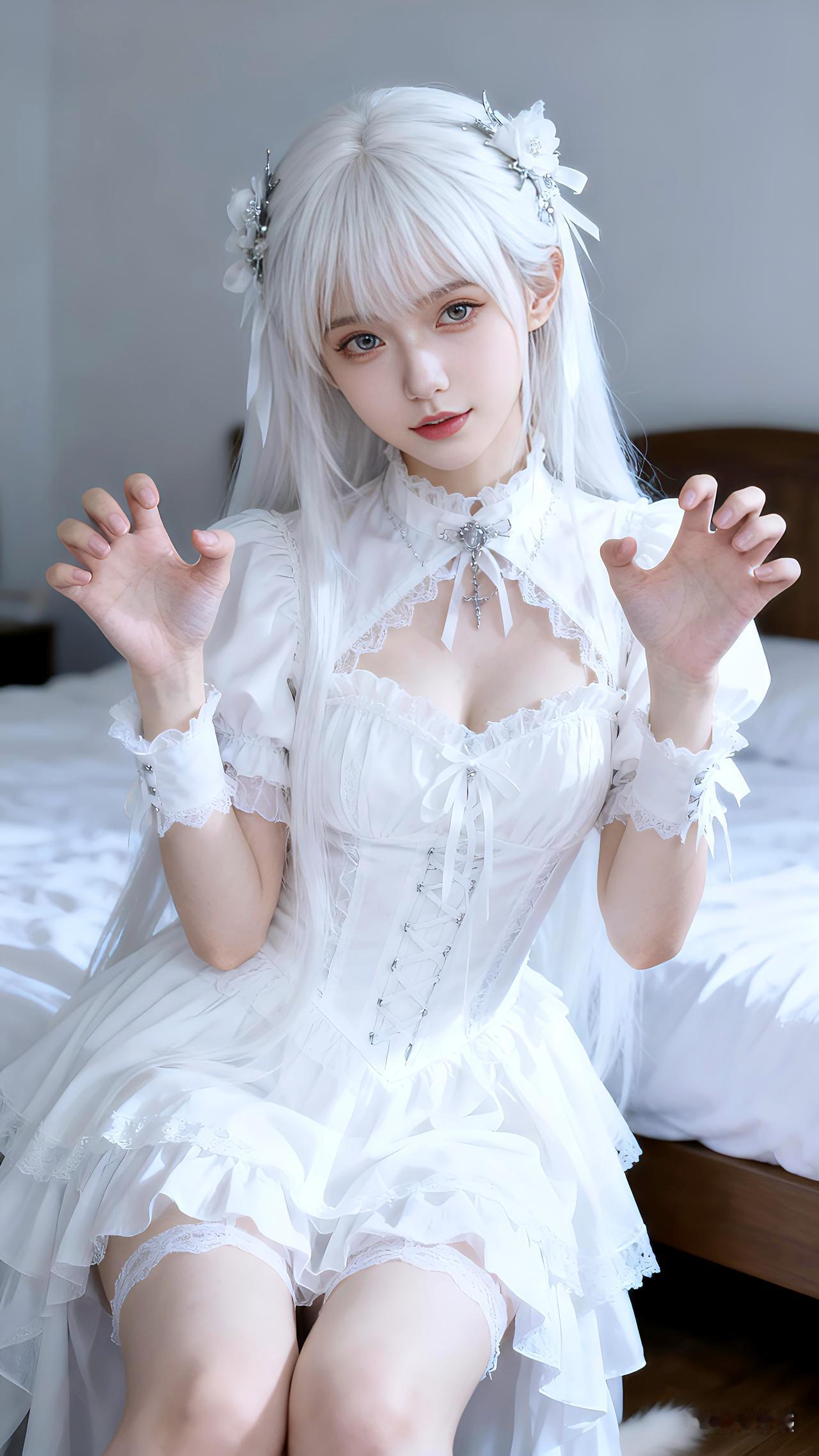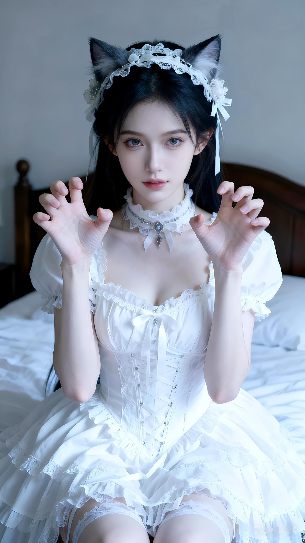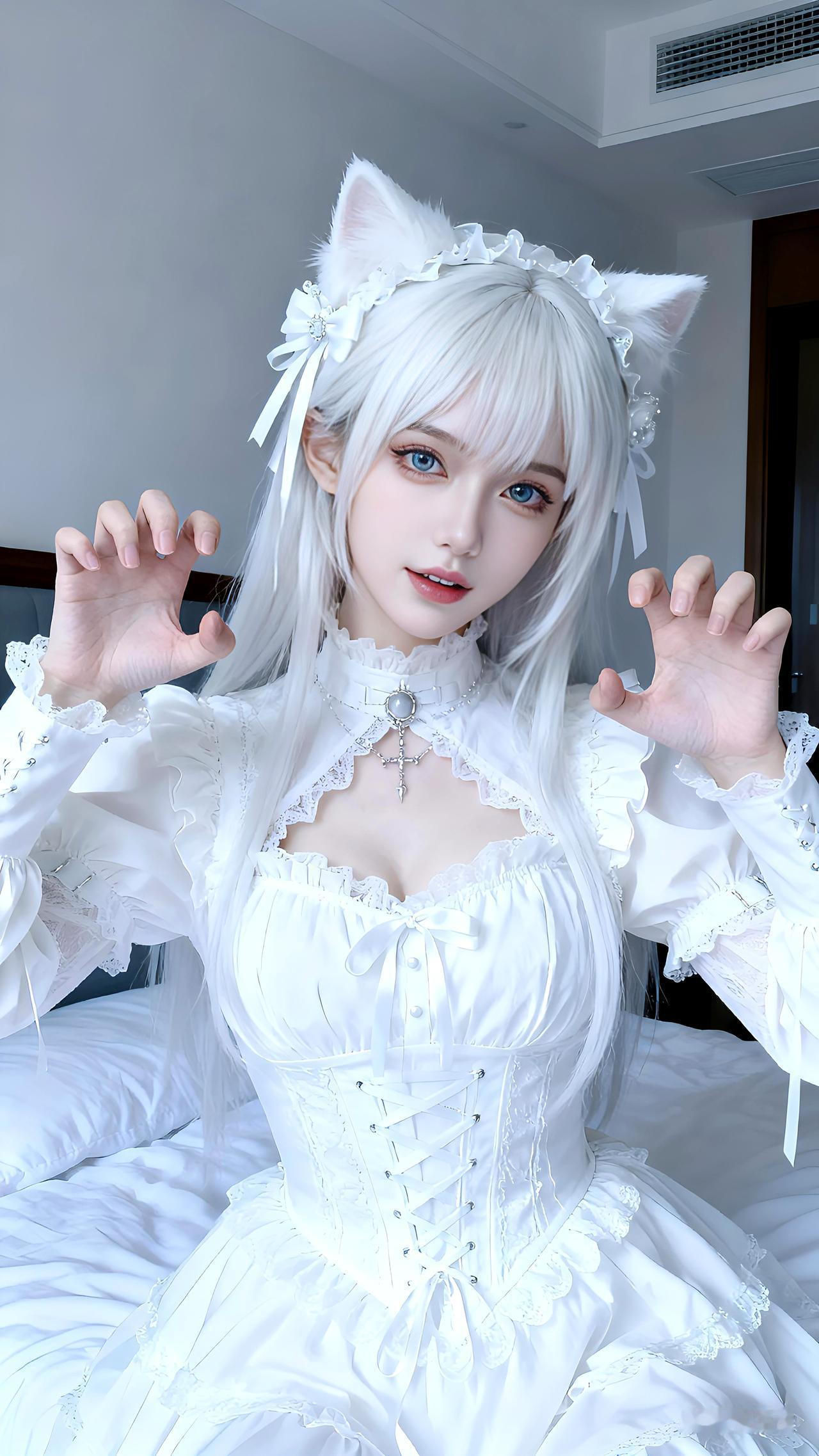 白喵突袭,你的心动值已满格~写真 壁纸