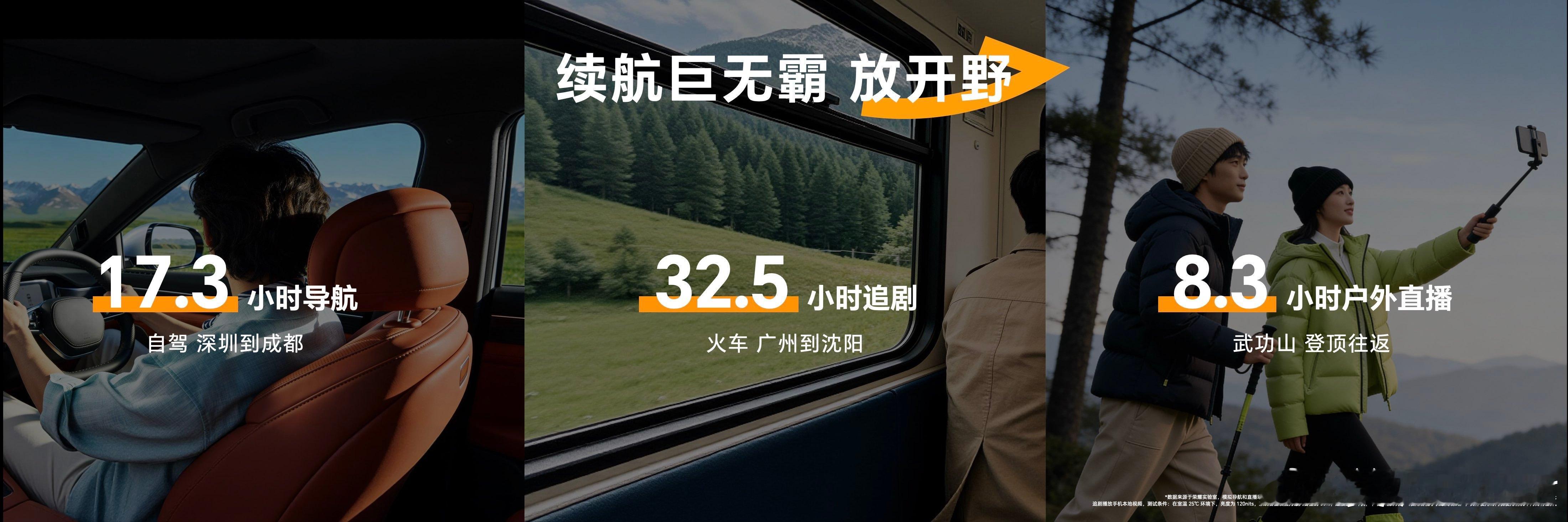 荣耀Power2搭载行业最大10080mAh青海湖电池,用一万多一点的电量,让户外的万一少一点。电池容量较前代提升26%,续航表现再度突破行业极限,不仅能轻松满足用户两天以上使用需求,更能为户外高强度作业者提供全天不断电的可靠保障,凭借强悍续航能力,荣耀Power2荣登三大权威媒体续航榜单TOP1,真正的续航巨无霸,行业巨能比。更难得的是,在如此强劲的续航之下,荣耀Power2 依然将机身控制在约7.98mm的纤薄厚度与约216g的轻盈重量,并支持80W超级快充与27W反向充电,半小时即可充满46%,让J人从此告别续航焦虑。