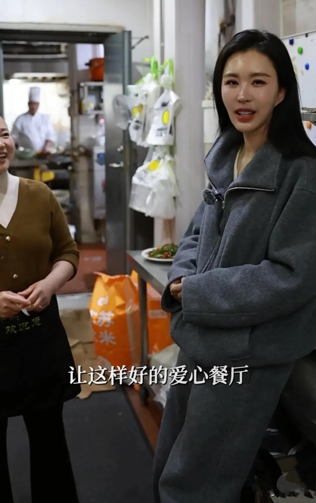 王石老婆田朴珺,打卡上海爱心餐厅。 她穿着一身深灰色的休闲装,脚踩增高鞋,长发披肩,身材高瘦。 看脸她挺瘦的,还有点凸嘴,但是气色挺好的,脸色红润,眼神很精明。 她在餐厅点了一份爱心餐,想看一下爱心餐到底有什么菜色,最后还和老板娘交谈了爱心餐厅的创业过程。 说实话,看她说话,她总会在不知不觉间流露出一种莫名的优越感,感觉她本人好自信啊!