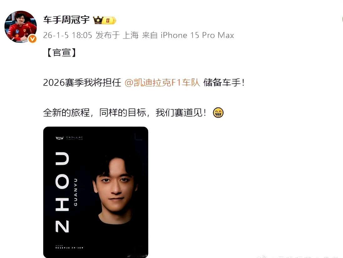 周冠宇将于2026赛季担任凯迪拉克F1车队的官方储备车手,核心任务包括: 随时待命顶替主力车手出战(如伤病或突发情况);参与赛车研发测试、模拟器开发及赛道技术支持。 车队领队格雷姆·洛登强调,其职责聚焦技术支援,不涉及培养其他车手(如测试车手赫塔)。 目前凯迪拉克车队签约车手有:前印地赛车手赫塔担任测试车手,帕吉诺、菲蒂帕尔迪和伊斯特伍德均为模拟器车手。而赫塔尚未取得超级驾照,因此佩雷兹或博塔斯无法参赛时,周冠宇会是第一候补车手。