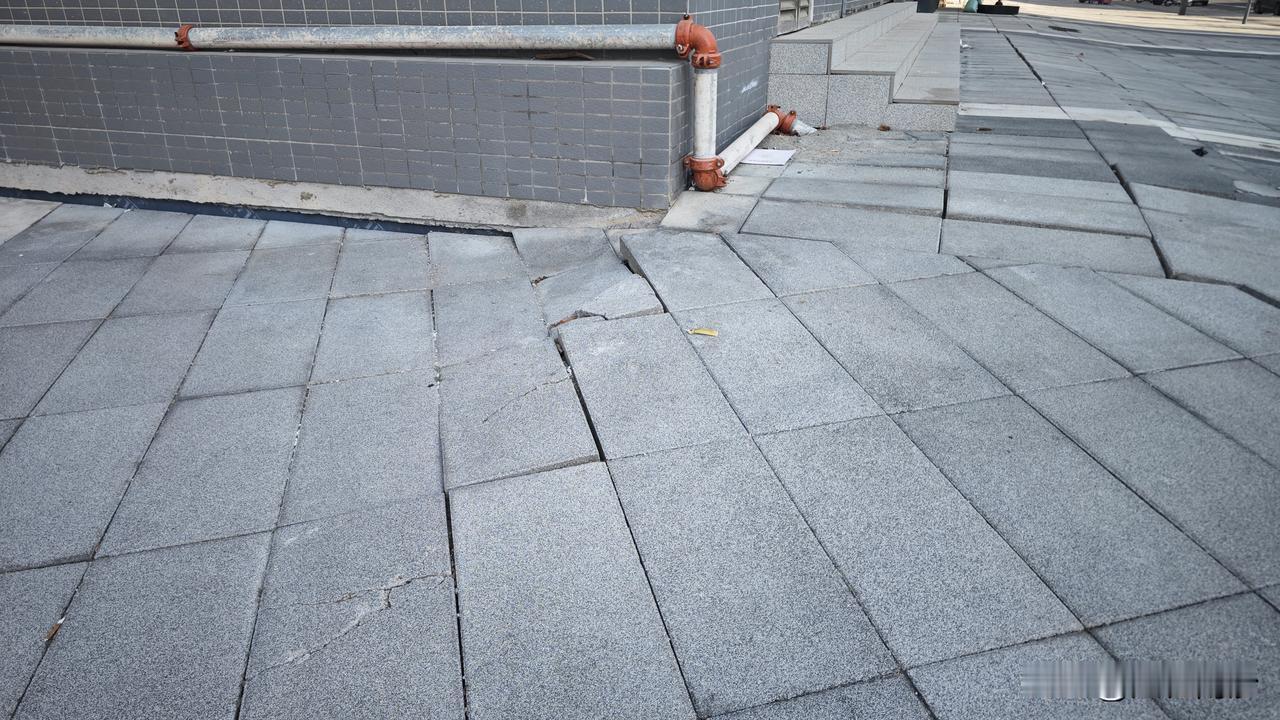 在南沙,没有任何一个楼盘可以躲得了沉降,尤其是底商路面最为经典,因为楼盘整体有桩和车库托着,所以没啥问题。而路面没有支撑,久了就会出现底商路面变斜坡的问题。 而你敢信这还是一个建成收楼才一年多的楼盘而已,情况就这样了。