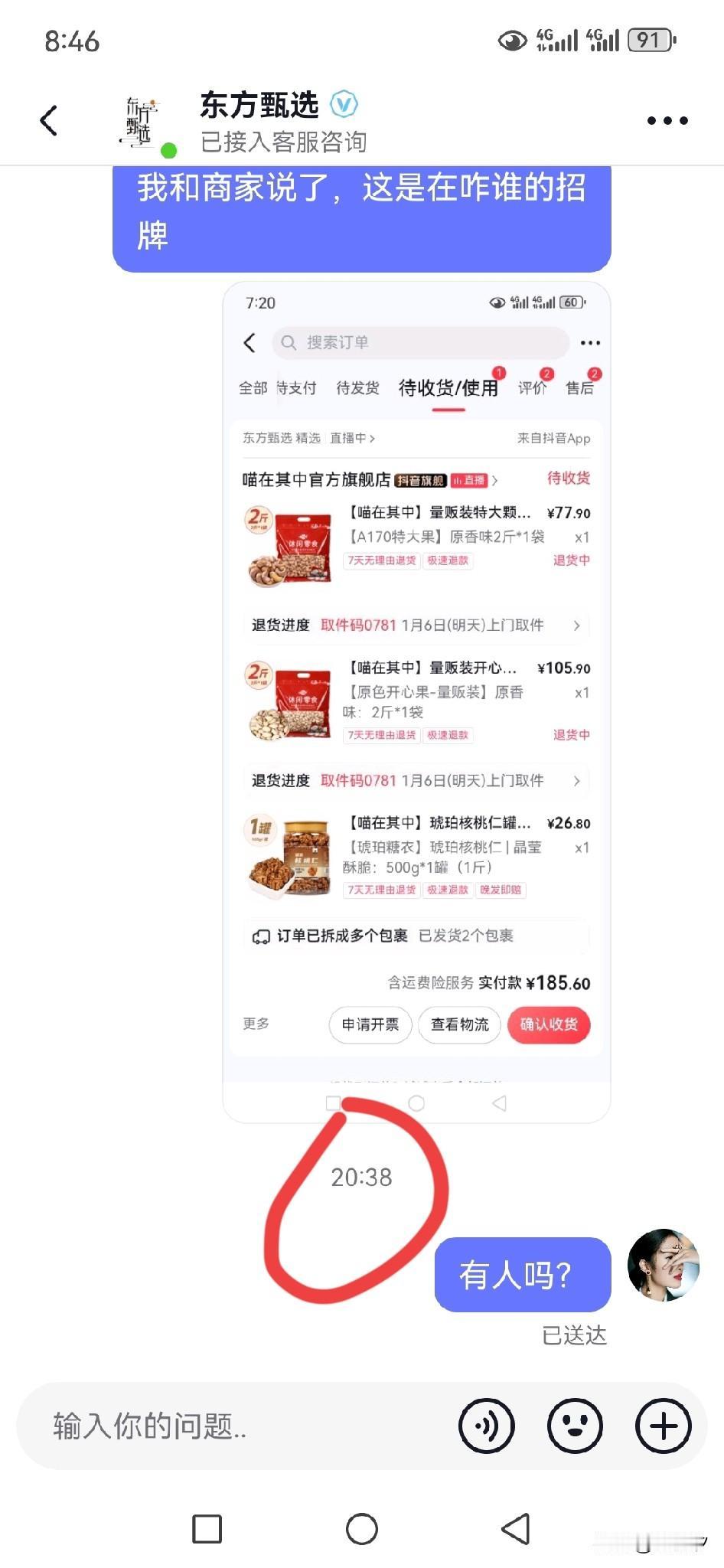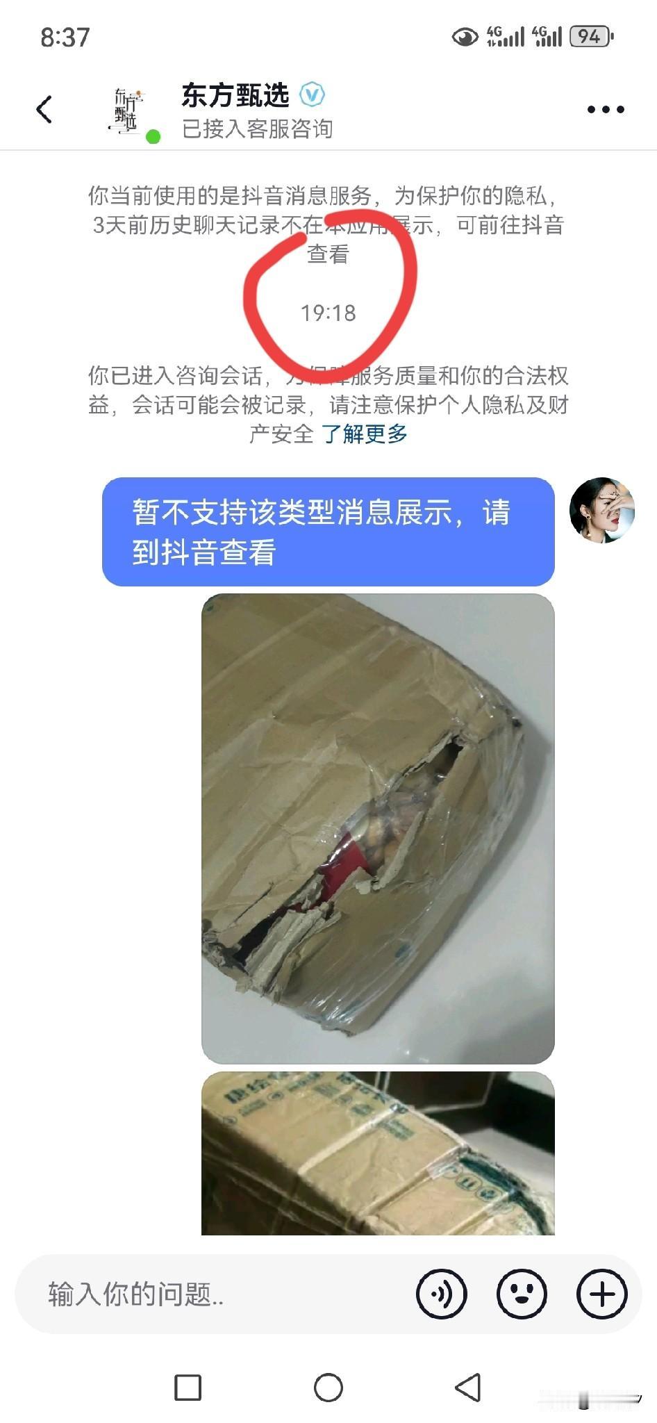 没有对比就没有伤害!快两个小时了,没有人回复,就连机器人都没有!第一次见这种包装,还是在一个特别大的直播间买的! 宇辉的客服可以说是秒回! 东方的客服难道真的很忙? @东方甄选