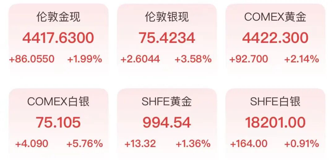 1月5日,金价大涨,现货黄金重回4400美元/盎司关口之上,日内涨幅扩大至1.9%。与此同时,现货白银价格一度大涨4%。