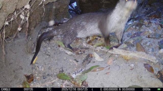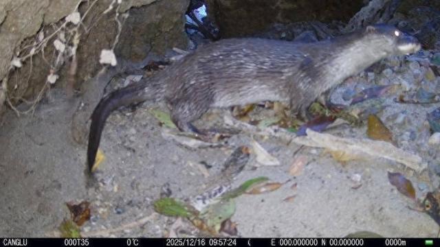 为进一步核实物种身份,该局工作人员随即在该区域部署多台红外相机,其间虽记录到部分影像,但因清晰度不足难以准确辨别。经过持续优化监测点位、改进拍摄技术,终于在2025年12月16日成功获取到清晰的照片及视频素材,经查阅大量文献资料比对确认,所记录的动物正是欧亚水獭。