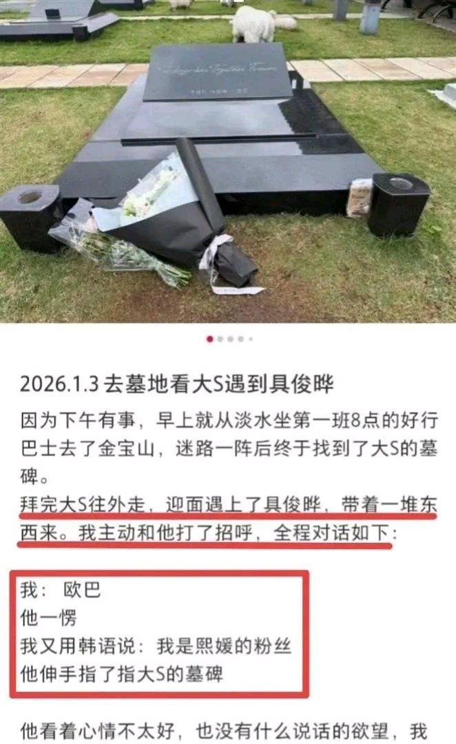 大S走快一年了,这一年S家和汪家变化天差地别。汪小菲事业顺风顺水,麻六记开到海外,新老婆也有了身孕,俩孩子跟着他适应了新生活。 反观S家,小S和S妈还沉浸在悲痛中。具俊晔当初承诺要保护孩子、处理遗产等,可现实是,大S那套价值4.6亿台币的豪宅面临法拍,巨额债务成了难题。 元旦小长假,具俊晔佝偻着身子现身墓地。虽有人质疑他作秀,但他天天来,没带马扎、没摆祭品,就蹲那擦墓碑,对着画像喃喃自语,这心意或许不是装的,只是承诺难兑现,让人唏嘘。