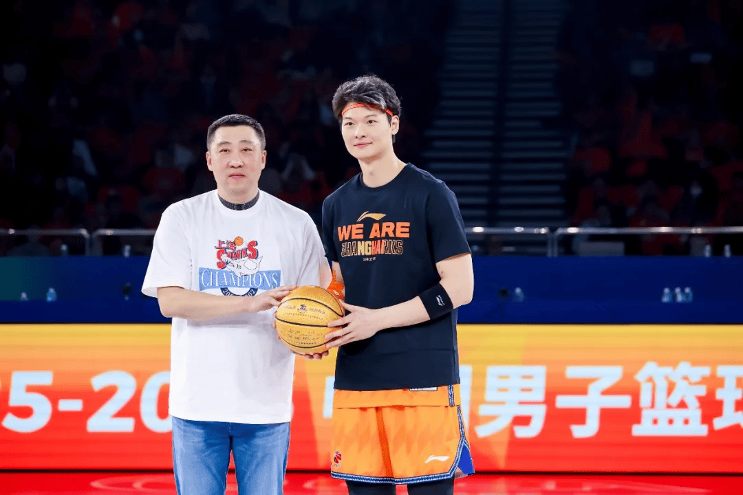 传承也在具象化的仪式中完成升华。老队长章文琪手持一枚镌刻着2001-2002赛季夺冠阵容全体成员签名的纪念篮球,郑重地交到现任队长王哲林手中。这不仅仅是一件穿越时空的信物,更是将“顽强拼搏、追求卓越”大鲨鱼的精神密码,传递到新一代运动员的手中。