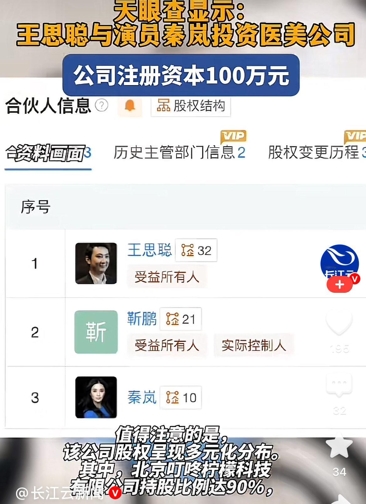 八竿子打不着的两个人, 王思聪和秦岚, 竟然合伙开了个医美公司,只能说娱乐圈真是一个圈! 天眼查显示,王思聪和秦岚合伙投资开了一家,北京柠悦悦己医疗美容诊所有限责任公司,并且注册资本是100万。 王思聪和秦岚都是公司收益合伙人,这下可热闹了,网友纷纷猜测娱乐圈和王思聪沾边的女明星到底还有多少是我们不知道的。 一直以为秦岚和魏大勋好事将近了,谈了好几年恋爱了,咋就又和王思聪扯上关系了呢。 八竿子打不着的两个人开公司确实挺让人震惊的。