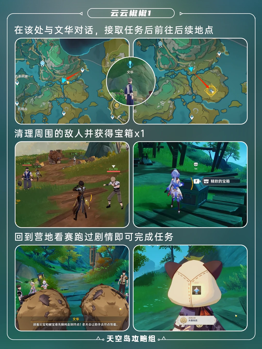 超简单沉玉谷世界任务「云云椒椒」+成就「从善如流」,你做完了吗?[哇R] 传送至腰蝶谷左上方地界边缘传送点,与文华对话后接取,清剿敌人并过完剧情即可完成 共计30原石+1成就+1精致宝箱!
