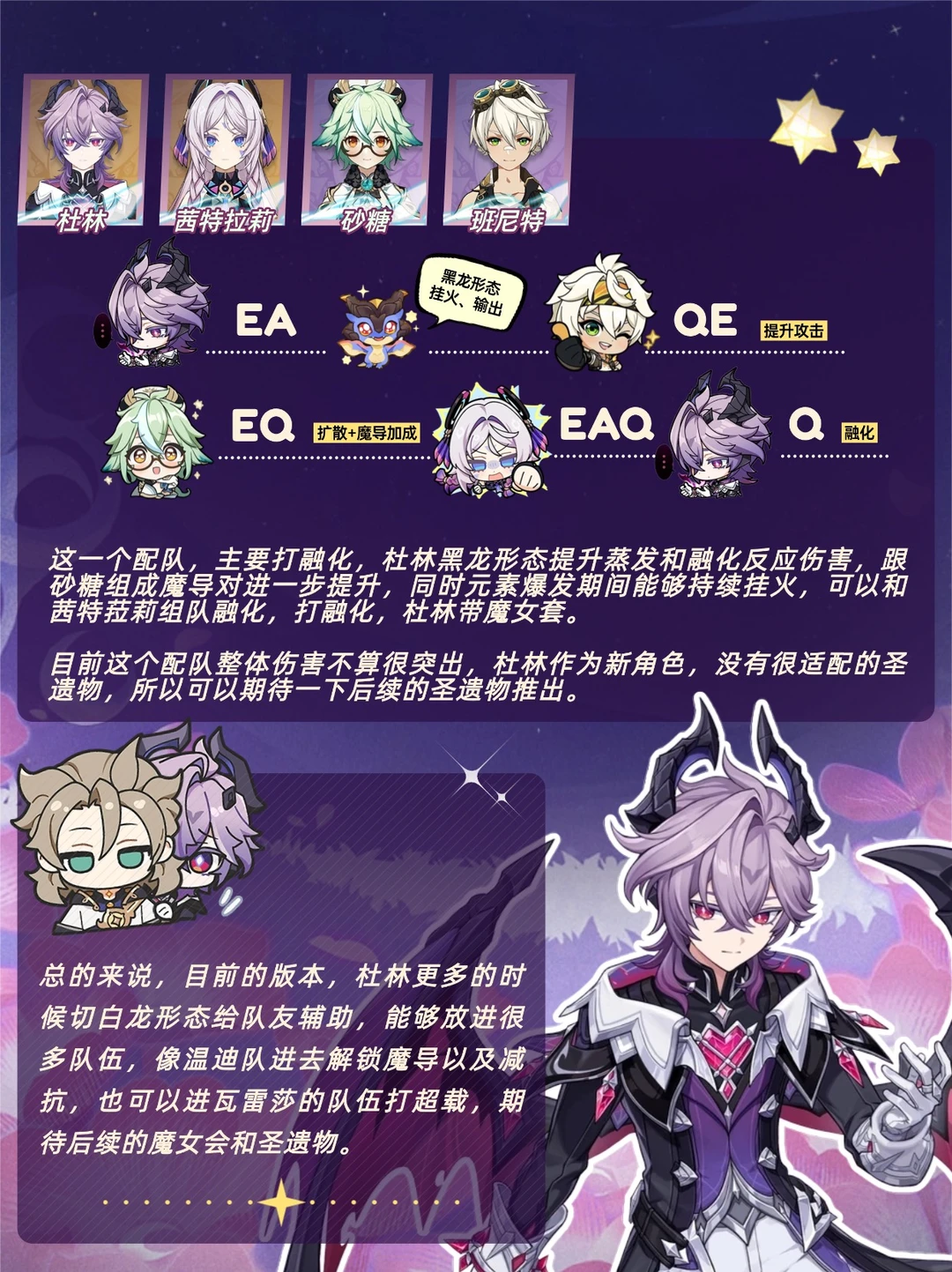杜林挂火输出手法+配队攻略![哇R] 杜林目前推荐使用白龙形态,可与温迪、珐露珊、茜特菈莉、班尼特等角色组队