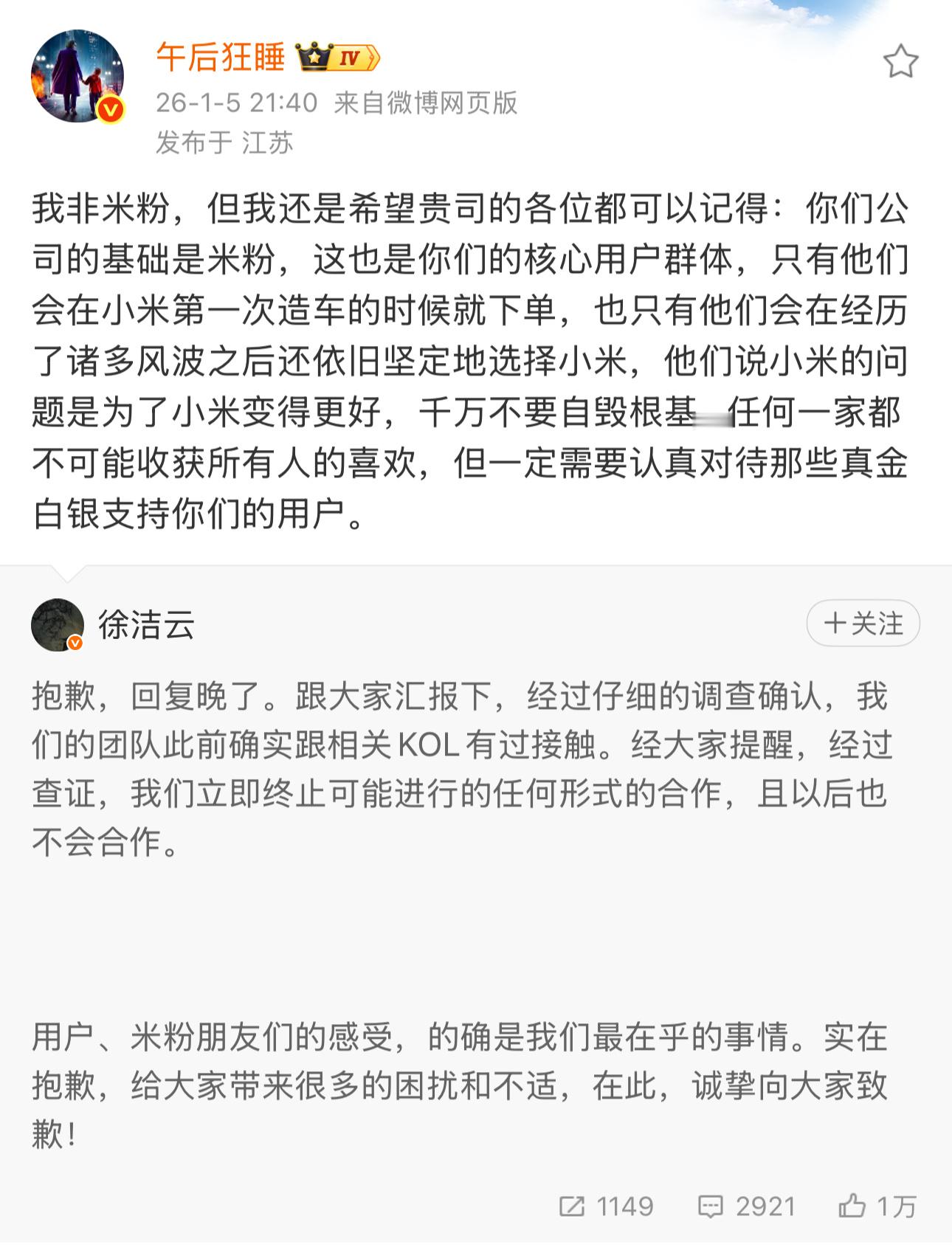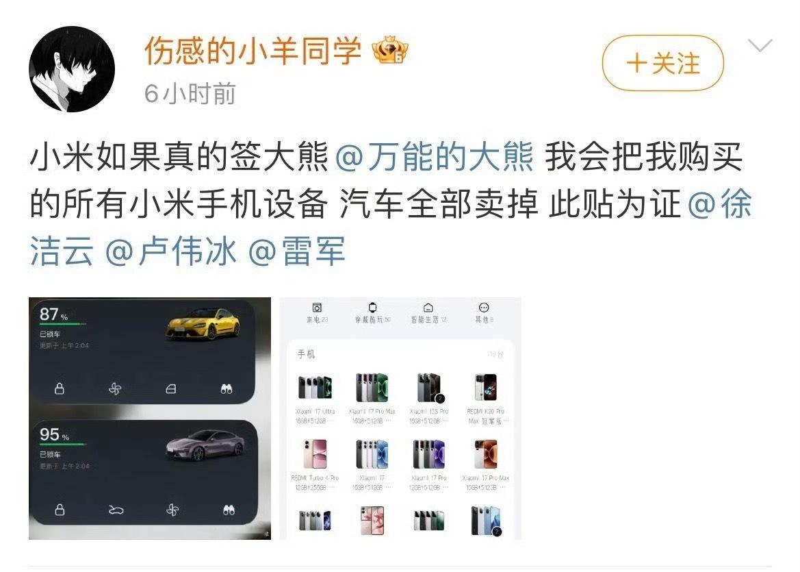 小米准备和万能的大熊合作,引发了午后狂睡以及一众米粉的抵制,最终小米取消了和大熊的合作并道歉。这也是互联网的江湖……小米立即终止与相关kol合作小米徐洁云致歉小米立即终止与相关kol合作