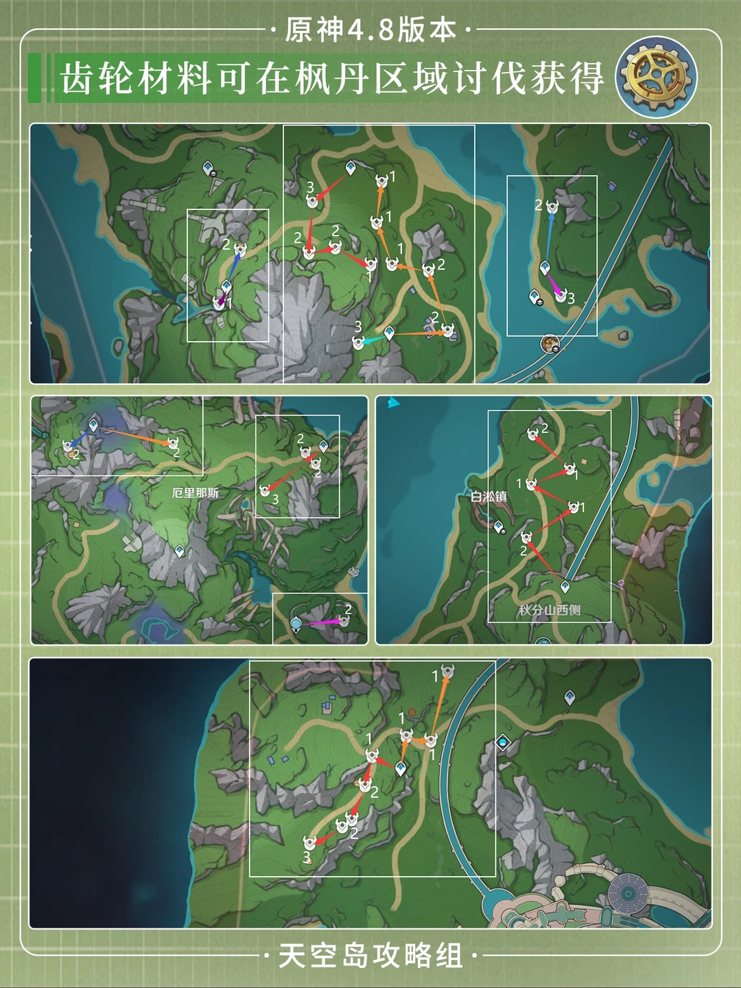 原神艾梅莉埃材料收集 湖光铃兰+齿轮路线