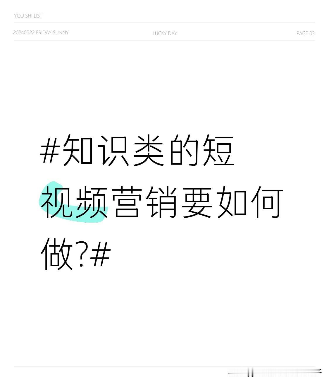 知识类的短视频营销要如何做? 知识类短视频营销其实不难。得先明确目标受众,比如想针对学生群体,就分享学习方法、学科知识;面向职场人,就输出职业技能、行业动态。 内容要专业且有趣。像讲历史知识时,别干巴巴地罗列事件,结合些野史趣闻,让观众听得津津有味。还得保证内容的深度和实用性,比如教摄影技巧,要把参数设置、构图原理讲透。 推广也不能少。利用热门话题、与其他博主合作互推,增加曝光度。定期更新,培养观众的观看习惯。这样多管齐下,知识类短视频营销肯定能有好效果。