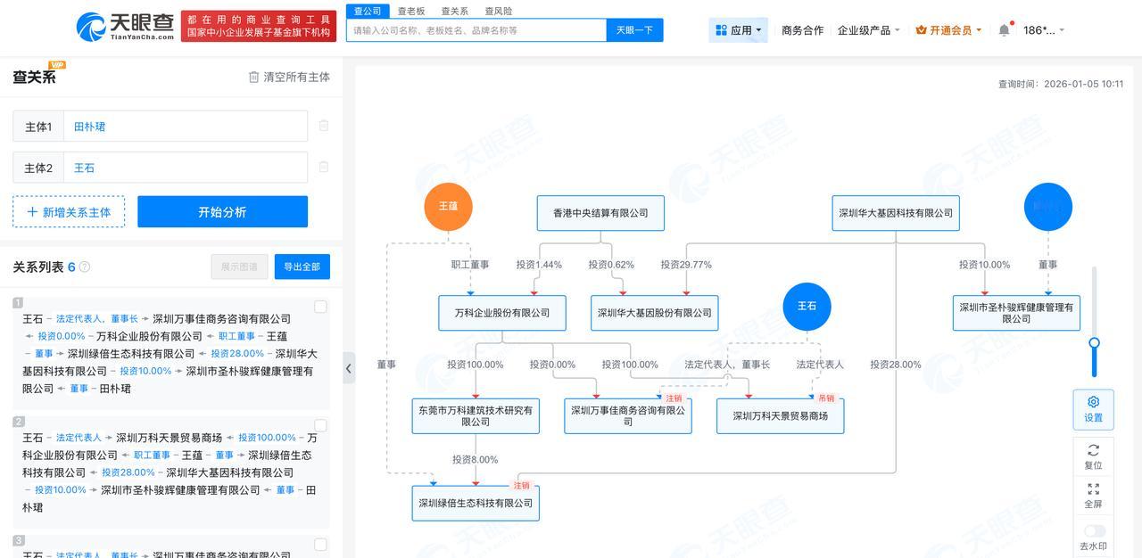 田朴珺名下关联5家存续企业 田朴珺与王石无直接商业关联田朴珺 王石 近日,田朴珺与王石的关系引发网友关注。 天眼查任职信息显示,田朴珺名下共关联5家存续企业,包括深圳市圣朴骏辉健康管理有限公司、北京承礼文化传媒有限公司等。王石名下共关联14家企业,其中启城绿色科技(深圳)集团有限公司、深石管理咨询(深圳)有限公司等企业为存续或开业状态。查关系信息显示,田朴珺与王石无直接商业关联。 天眼查信息:-c1525429568