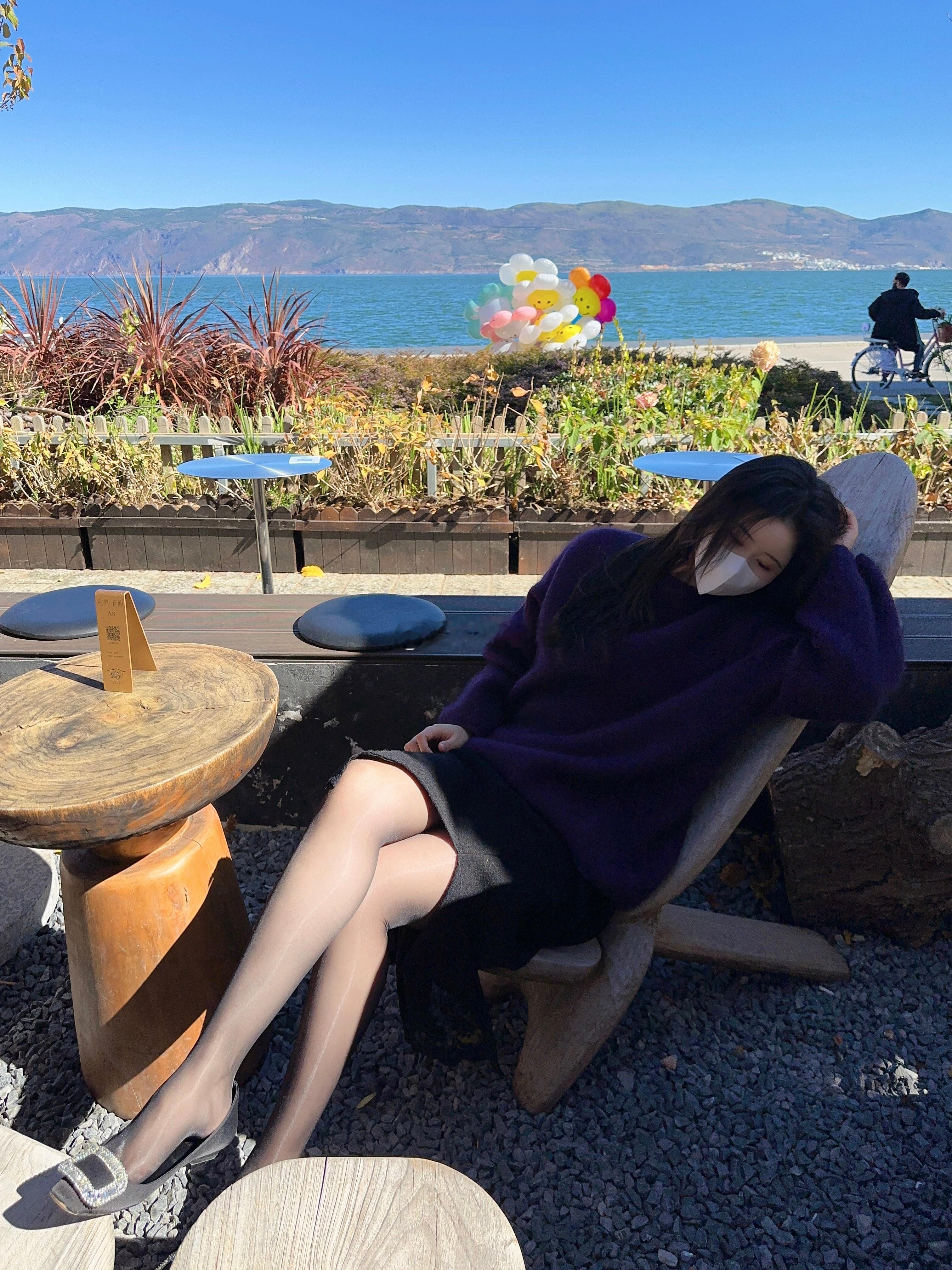 白绒红裙的轻暖墨发垂落时,像拢了层软雾的冬光落下来。米白高领毛衣织满