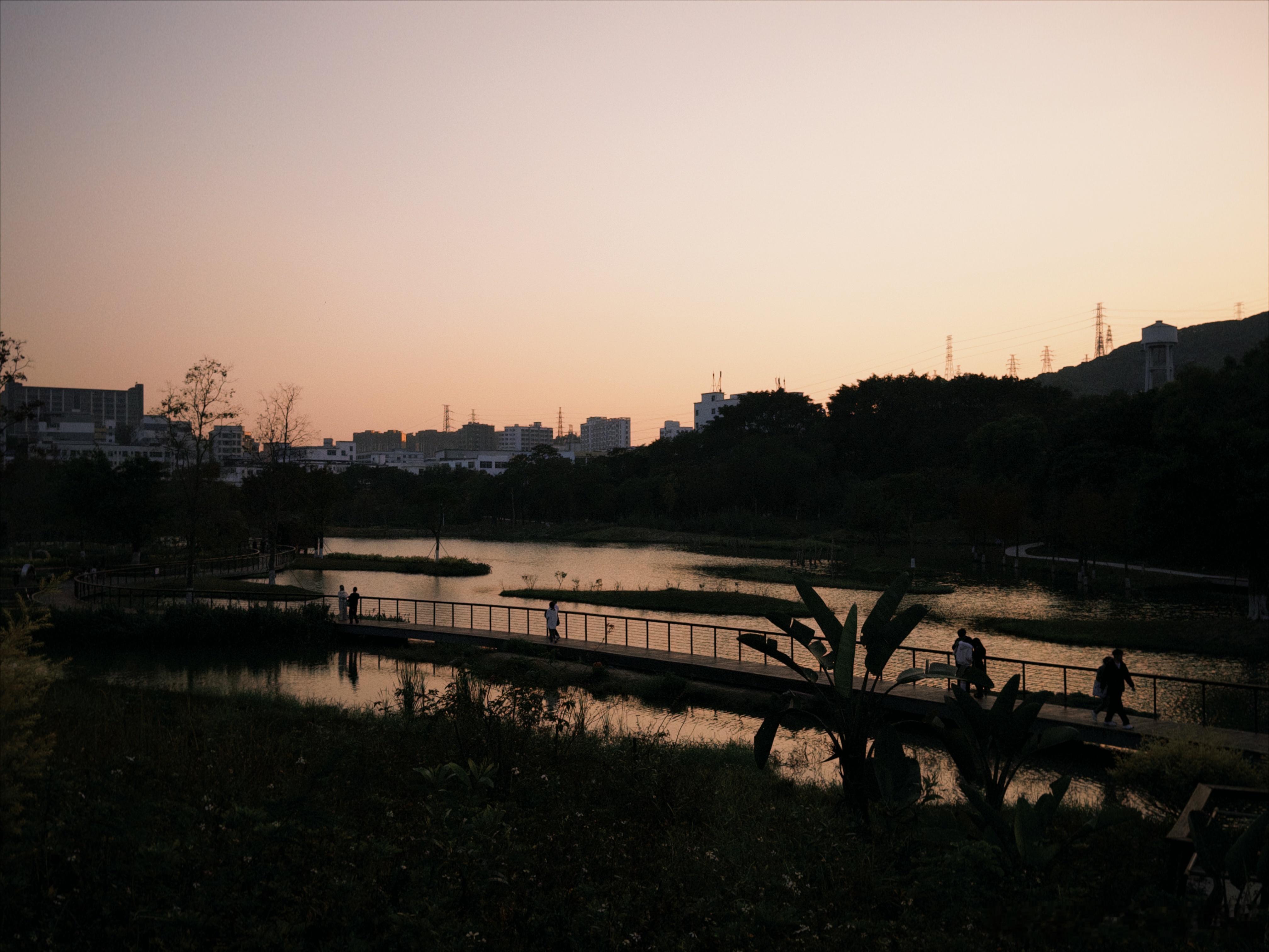 第一次来九围湿地公园刚好在日落时分 非常舒适除了停车麻烦 环境是真的漂亮这几年全国各地都建了很多新公园特别是带娃的家庭周末能换着各种公园去玩也能让小孩获得更多户外时间 深圳·九围湿地公园