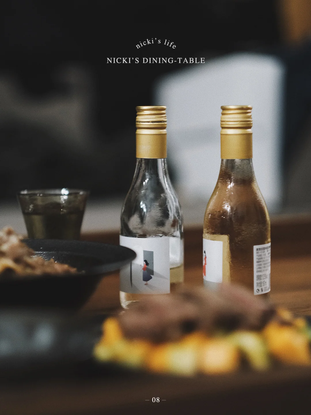 器皿在我看来是餐桌仪式感的重要⻆色,而酒是让餐桌更有氛围的存在,今天安排上的是美贺庄园四时葡萄酒,它分为春夏秋冬四小支,每一支的量刚好够2人小酌一杯,入口甜而不腻,淡淡的蜜桃 ⻄柚香味,甘甜馥郁,坚果的辛香很醇正,搭配今日菜谱,带走了蒜香的甘鲜微辣,⻮间弥漫着淡淡酒意,缓和了盛夏的燥热,我更喜欢充分冰镇后的口感,就好像夏日凉⻛,带来一阵清凉。