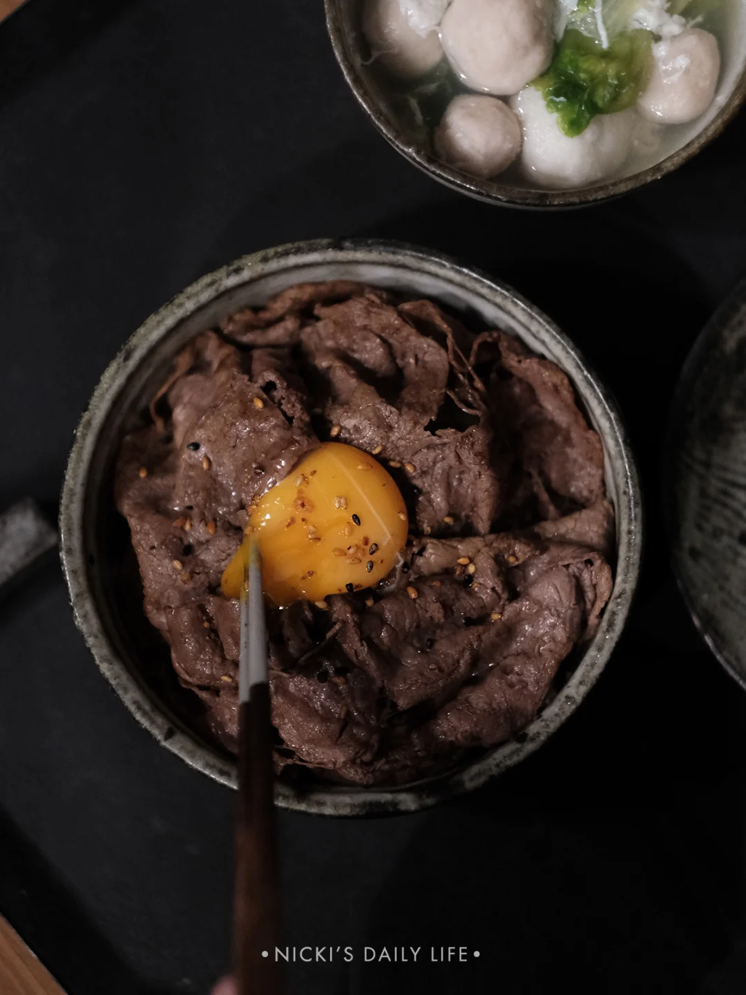 🍚晚餐:牛肉盖饭+时蔬+鱼丸汤