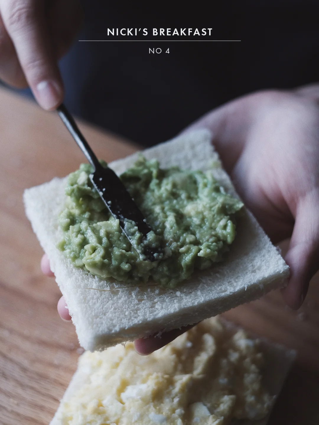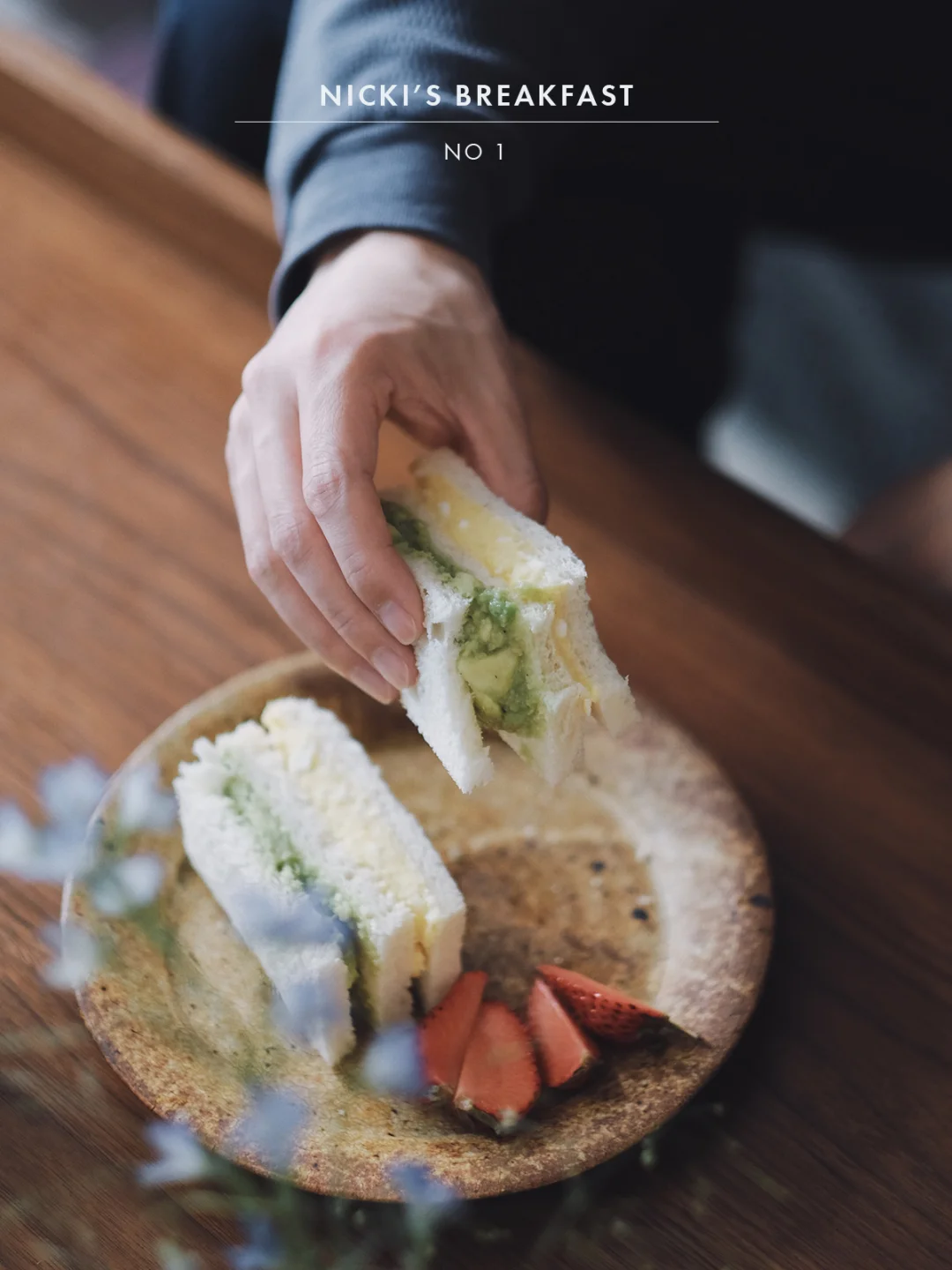 • 白吐司去边,一层鸡蛋土豆泥,一层牛油果泥,对半切即可