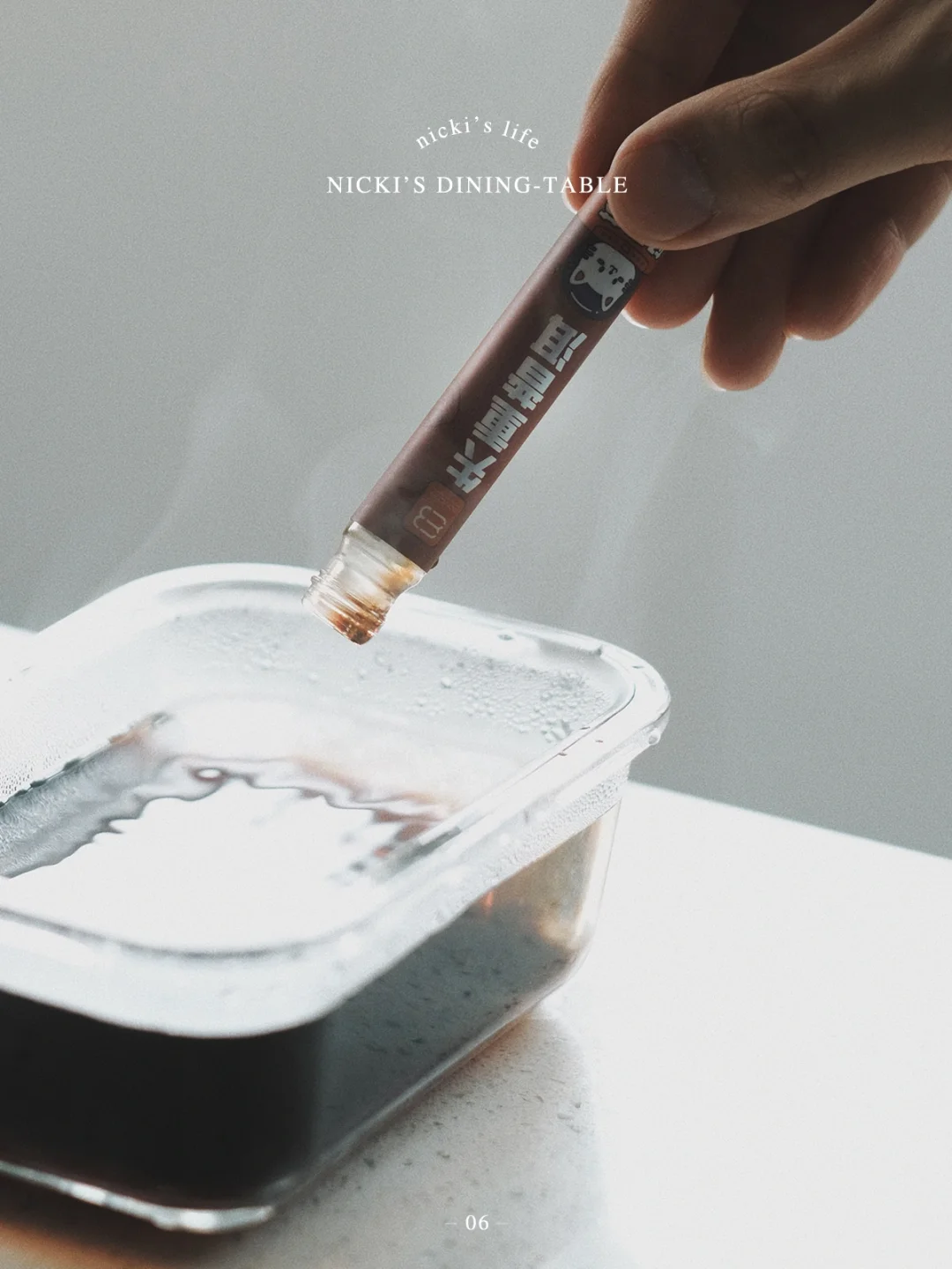 •用勺子挖出茶冻,加入燕麦奶,再淋上一点炼乳即可。