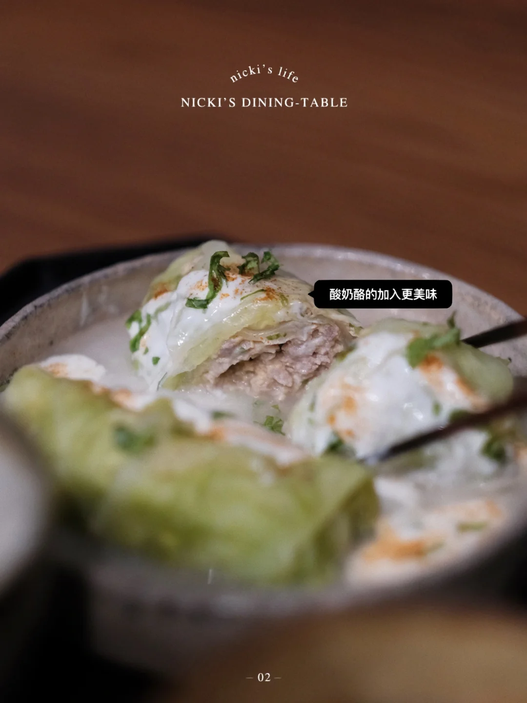 •锅中煮一碗鸡高汤,如果没有的话可以用少量浓汤宝,煮沸加入小一碗水淀粉即可,淋在卷心菜肉卷上,加上一勺酸奶酪,少许欧芹碎和甜椒粉即可。
