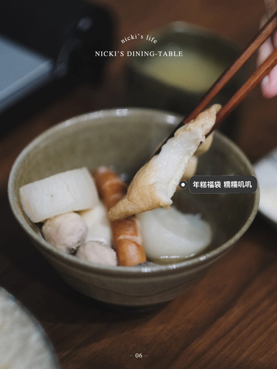 主食有了蟹黄面,再搭配上一锅热腾腾的关东煮,这顿晚餐就满分收尾了!关东煮的东西很多,可是最让我心心念念忘不掉的,就是那软烂细滑,鲜香适口的白萝卜。