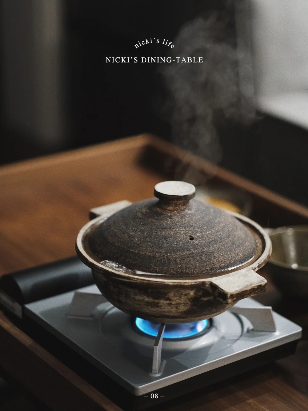 •浸泡的水和昆布一起入锅,煮至水冒小泡时,立即关火。