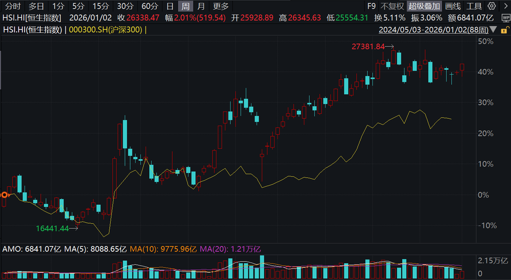 2025年的港股,上半年表现领先A股,但下半年相对疲弱。