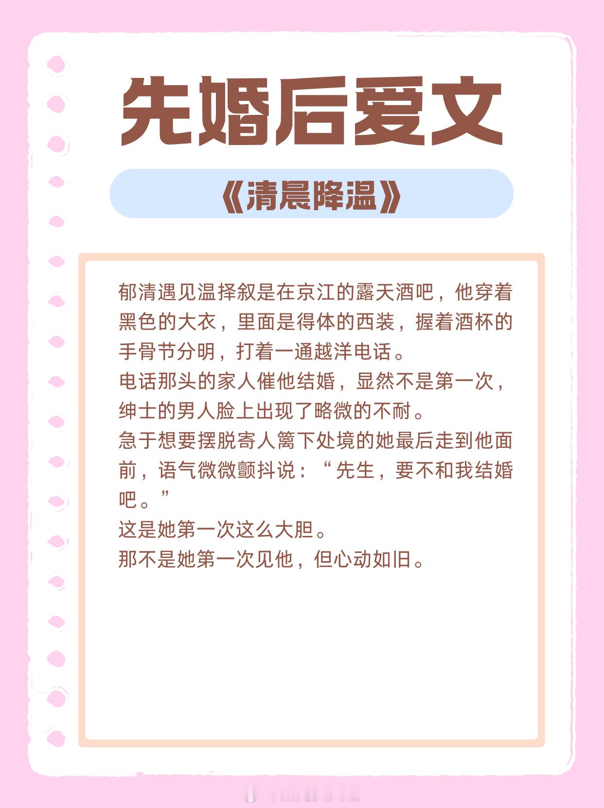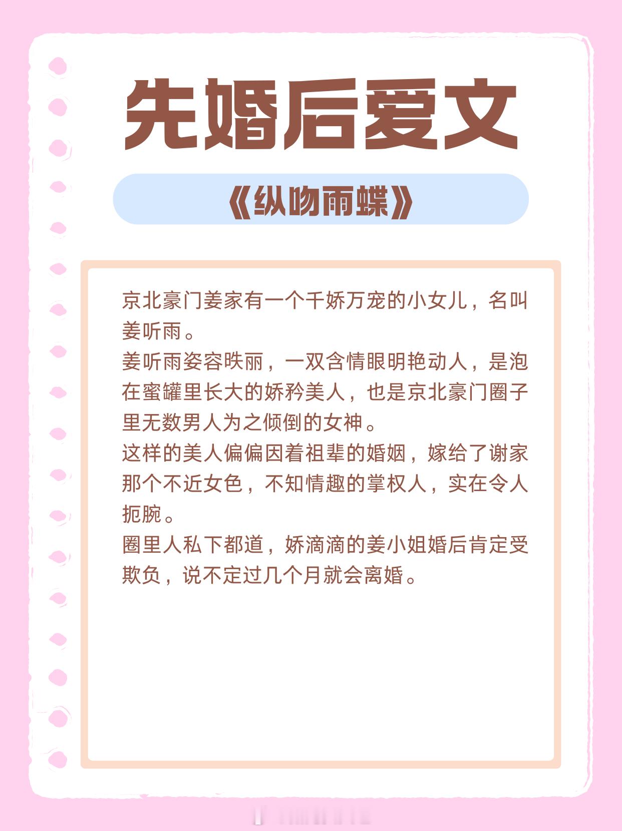 N刷先婚后爱文,那不是她第一次见他,但心动如旧。1、《公开》作者:臣年2、《清风枕明月》作者:青山问我3、《清晨降温》作者:初厘4、《太太她有点疯》作者:四单铺5、《纵吻雨蝶》作者:从柚6、《你给的甜》作者:风晓樱寒7、《北渡春音》作者:放鹤山人8、《第九次告白》作者:越六关9、《嫤语书年》作者:海清拿天鹅热门言情小说推荐 这小说写在我心趴上了