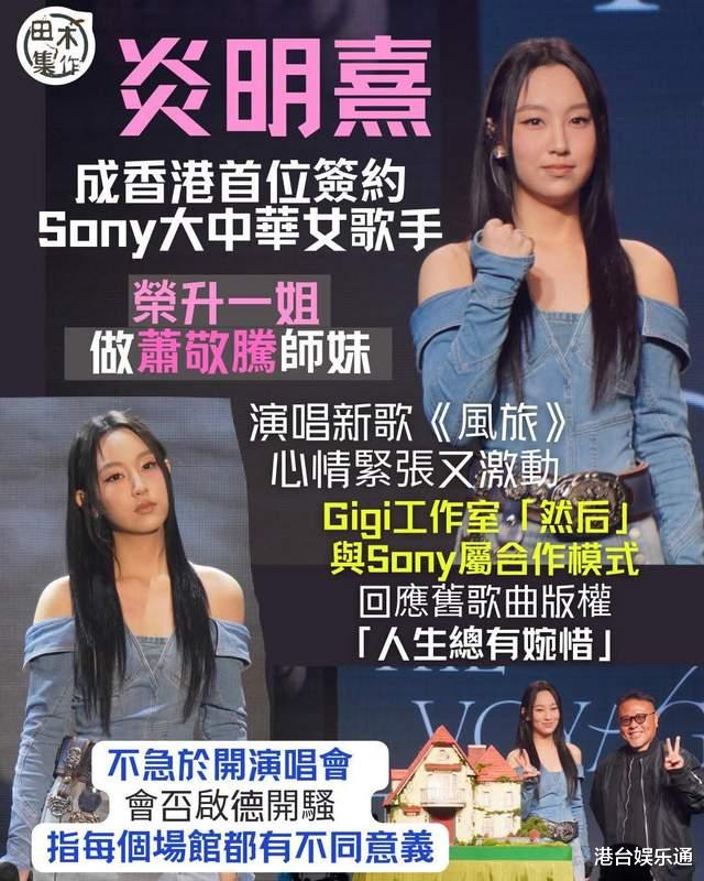 谈及成为继萧敬腾后第二位签约索尼唱片大中华区公司的歌手,炎明熹表示,已经收到萧前辈的加油鼓励,希望接下来有机会和对方合作。至于签约后是否已确立索尼华语地区一姐的地位,她笑言愧不敢当,是“二妹”还差不多。