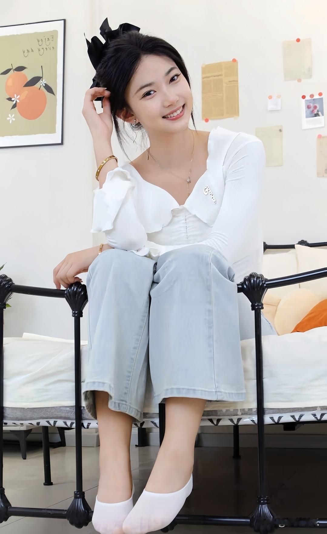 咖啡馆里的甜美少女,穿搭清新,微笑迷人!😊💕 晒晒你的咖啡美图今日分享随手拍