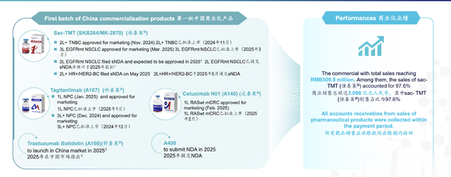 可就是这样,2025H1公司还是实现了3.1亿的商业化销售额,几乎全由Sac-TMT贡献。基本只有一款产品在售就能有这样的成绩,下半年还有三款产品在售,预估2025年实现10亿营收其实都有点保守。