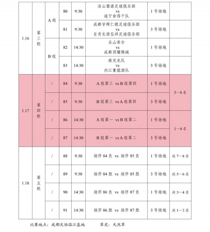 直播吧01月06日讯1月5日,四川省足协公布了“三大球”联赛(足球项目)男子组总决赛的竞赛日程,这意味着比赛在被叫停一段时间后恢复进行。