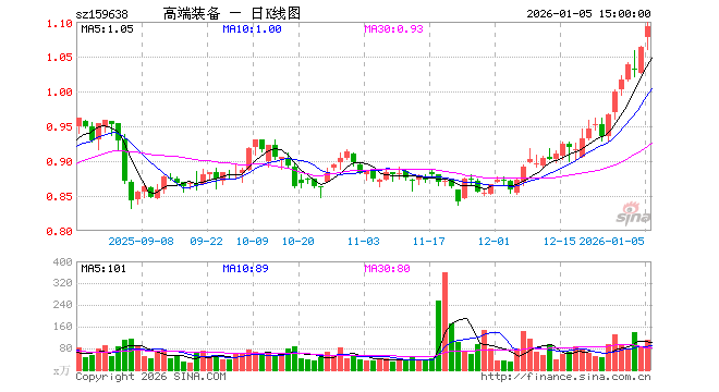 1月5日,高端装备ETF(159638)涨2.73%,成交额1.21亿元。当日份额增加1700.00万份,最新份额为19.52亿份,近20个交易日份额增加300.00万份。最新资产净值计算值为21.24亿元。