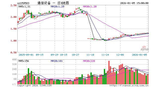 1月5日,通信设备ETF(159583)涨1.69%,成交额2.11亿元。当日份额减少4000.00万份,最新份额为9.41亿份,近20个交易日份额增加1.04亿份。最新资产净值计算值为12.47亿元。