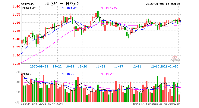 1月5日,深证50ETF富国(159350)涨1.67%,成交额2279.00万元。当日份额增加200.00万份,最新份额为1.44亿份,近20个交易日份额减少1200.00万份。最新资产净值计算值为2.20亿元。
