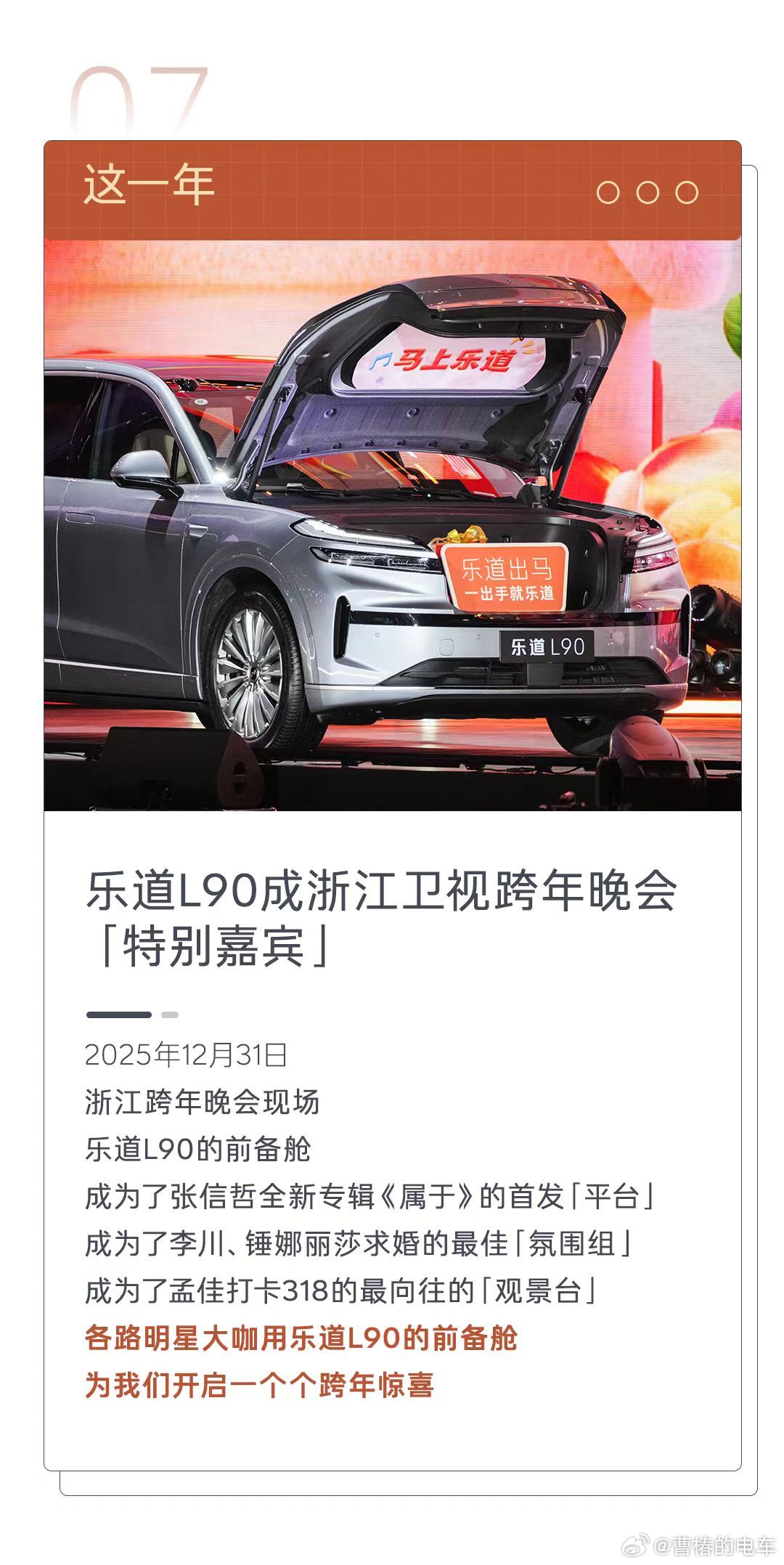 2025年乐道L90仅用5个月时间交付新车43,439台,成为2025年度纯电大型SUV销冠。📌首发240L中国市场最大前备舱,实现前所未有的6人10箱出行体验,重新定义大三排SUV,并把前备舱带入比后备箱更好用的时代。📌安全、健康、效率领先,成为大三排SUV首个C-NCAP&C-GCAP双五星认证车型,刷新大三排SUV技术标杆。📌向换电网络增投8000块电池,满足新年/春运高峰换电需求。📌与国民IP浙江卫视跨年晚会携手,特别嘉宾“前备舱”见证多个跨年热搜惊喜场面。一图回顾乐道L90 2025年度高光时刻!
