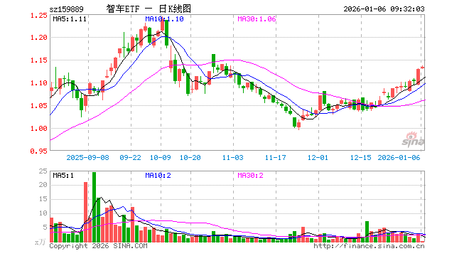 1月6日,智能汽车ETF(159889)开盘涨0.09%,报1.130元。智能汽车ETF(159889)重仓股方面,立讯精密开盘涨0.56%,拓普集团涨0.86%,芯原股份跌0.51%,豪威集团涨0.11%,科大讯飞涨0.43%,德赛西威涨1.60%,闻泰科技跌0.13%,欧菲光涨0.37%,均胜电子跌0.32%,思特威涨0.46%。