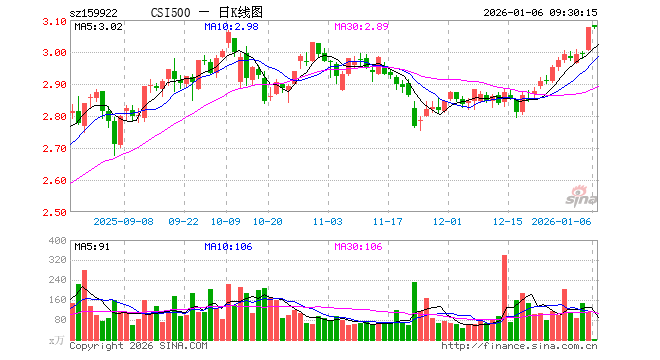 1月6日,中证500ETF(159922)开盘涨0.23%,报3.082元。中证500ETF(159922)重仓股方面,胜宏科技开盘跌1.33%,华工科技跌0.52%,先导智能涨1.12%,芯原股份跌0.51%,巨人网络跌0.40%,指南针涨0.00%,卧龙电驱跌0.48%,欣旺达涨0.23%,赤峰黄金跌1.03%,通富微电涨0.00%。