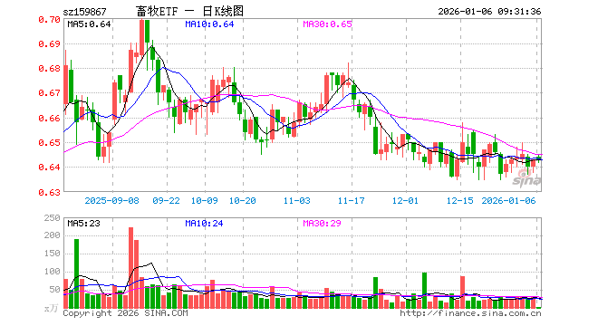 1月6日,畜牧ETF(159867)开盘涨0.16%,报0.644元。畜牧ETF(159867)重仓股方面,牧原股份开盘跌0.54%,温氏股份涨0.24%,海大集团跌0.18%,新希望涨0.00%,梅花生物涨0.00%,大北农跌0.25%,圣农发展涨0.06%,生物股份涨0.75%,天康生物涨0.00%,立华股份跌0.14%。