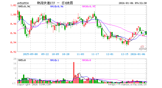 1月6日,物流快递ETF(516530)开盘涨0.84%,报0.964元。物流快递ETF(516530)重仓股方面,中远海控开盘涨0.13%,顺丰控股涨0.21%,圆通速递涨0.18%,招商轮船跌0.67%,京沪高铁涨0.19%,大秦铁路涨0.00%,蔚蓝锂芯涨0.45%,物产中大跌0.35%,建发股份跌0.11%,中远海能跌0.43%。