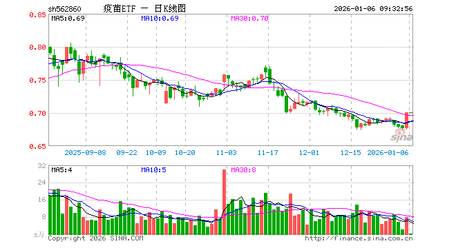 1月6日,疫苗ETF(562860)开盘涨0.00%,报0.701元。疫苗ETF(562860)重仓股方面,智飞生物开盘跌0.10%,万泰生物涨0.09%,沃森生物跌0.18%,荣昌生物涨0.01%,辽宁成大跌0.26%,康泰生物涨0.39%,长春高新涨0.16%,甘李药业跌0.01%,山东药玻涨0.25%,华兰生物涨0.20%。