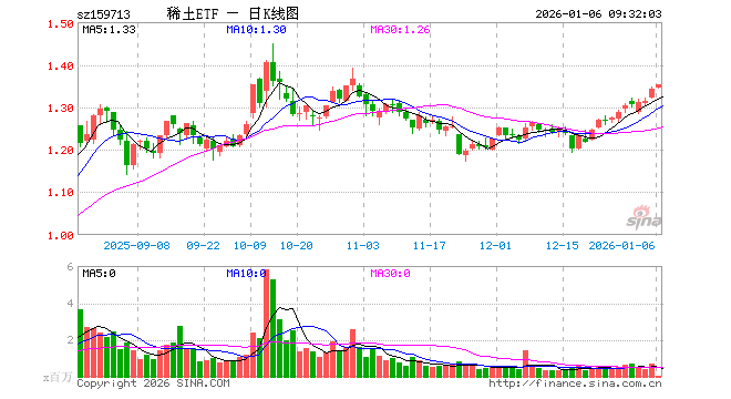 1月6日,稀土ETF(159713)开盘涨0.15%,报1.345元。稀土ETF(159713)重仓股方面,北方稀土开盘涨0.34%,卧龙电驱跌0.48%,领益智造涨1.00%,中国稀土涨0.50%,盛和资源涨0.41%,金风科技跌2.80%,格林美涨0.83%,包钢股份涨0.00%,厦门钨业涨1.00%,中国铝业涨2.00%。