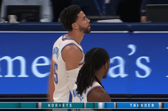 第一节比赛中,阿杰伊-米切尔替补上场4中4拿到10分,雷霆首节结束追平黄蜂。