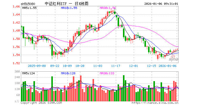 1月6日,中证红利ETF(515080)开盘涨0.06%,报1.553元。中证红利ETF(515080)重仓股方面,宁波华翔开盘涨0.36%,中远海控涨0.13%,冀中能源涨0.00%,潞安环能涨0.00%,中谷物流跌0.20%,农业银行涨0.00%,南钢股份跌0.38%,海澜之家涨0.17%,建设银行跌0.11%,中信银行跌0.53%。