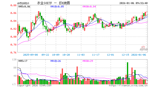 1月6日,农业50ETF(516810)开盘涨0.00%,报0.862元。农业50ETF(516810)重仓股方面,牧原股份开盘跌0.54%,温氏股份涨0.24%,海大集团跌0.18%,藏格矿业涨1.30%,盐湖股份涨3.29%,新希望涨0.00%,亚钾国际涨0.38%,梅花生物涨0.00%,扬农化工涨0.13%,大北农跌0.25%。