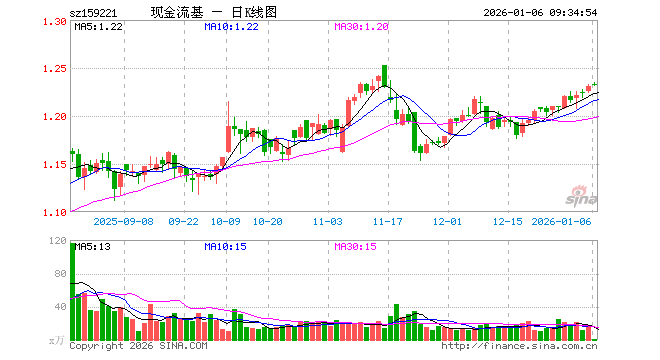 1月6日,现金流ETF嘉实(159221)开盘涨0.16%,报1.233元。现金流ETF嘉实(159221)重仓股方面,中国海油开盘涨0.00%,上汽集团跌0.20%,五粮液涨0.02%,格力电器涨0.02%,洛阳钼业涨1.71%,中国铝业涨2.00%,陕西煤业涨0.42%,上海电气涨0.00%,正泰电器跌0.31%,厦门国贸涨0.14%。