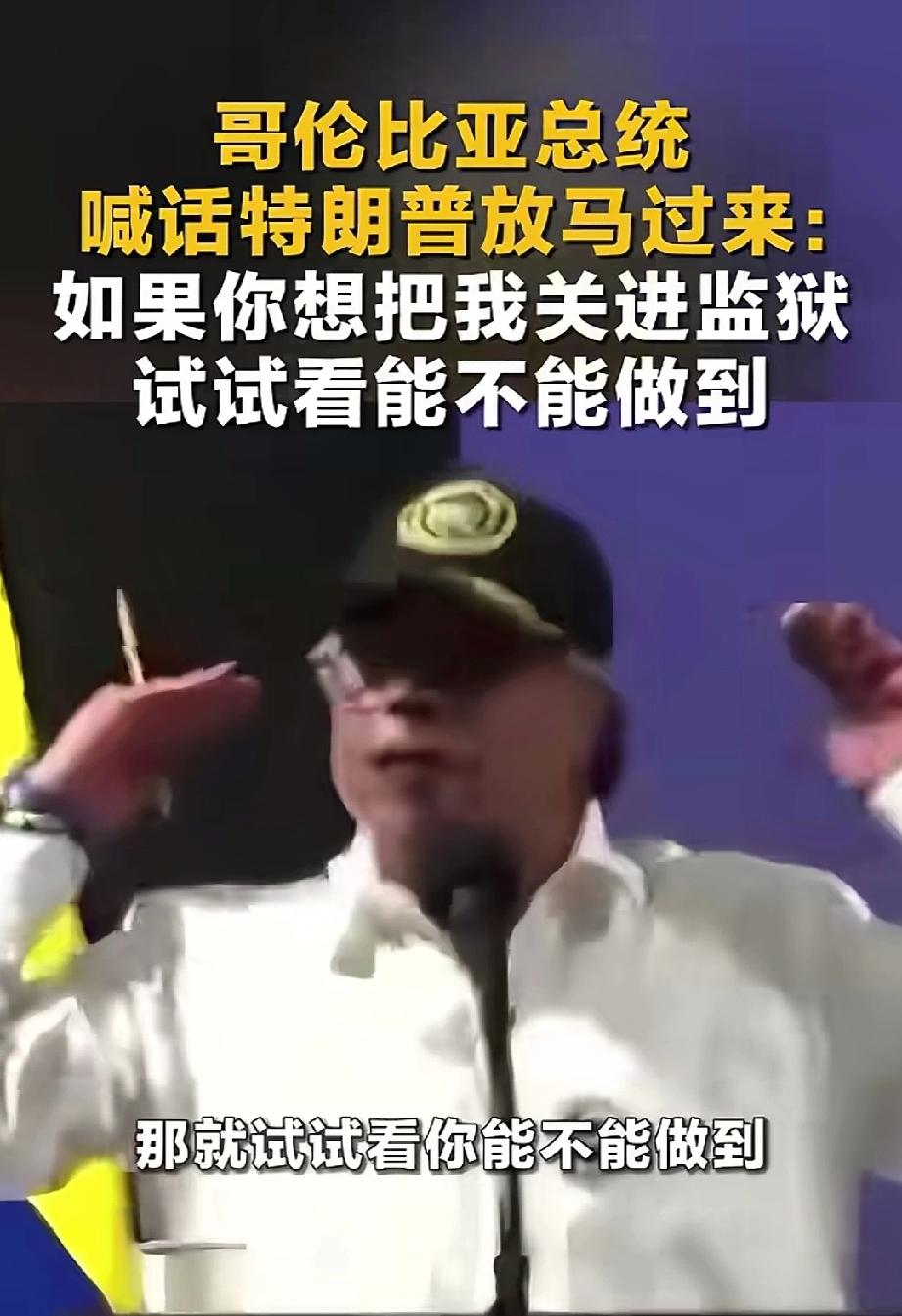 哥伦比亚总统佩特罗喊话硬刚特朗普:如果你想把我关进监狱 ,试试看能不能做到,如果你想让我穿上橙色的囚服,那就放马过来,哥伦比亚人民将走上街头捍卫我。 马杜罗:兄弟,你可拉倒吧,我以前也是这样要求的,2026年元旦假期就实现了我的新年愿望。兄弟,别提人民了,我当时也号称有900万人民捍卫我,结果一小时22分,人全跑没了,快别喊了低调点吧,现在吃香喝辣的,总比到时候人民把你送进去强多了。