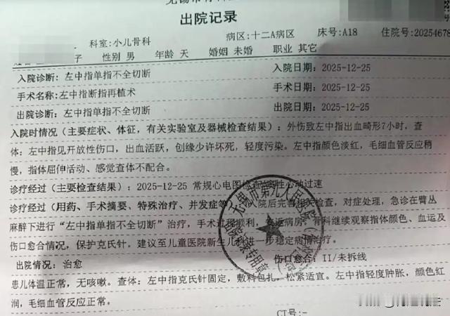江苏,简直不敢想象,产妇怀胎十月终于临产,生下小婴儿,助产士在给孩子剪脐带的时候,犯下严重错误,竟然给孩子的手指剪断。这本是常规操作,工作人员怎么能犯下如此大错?孩子经过两次手术接手指,两次转院,最后转到无锡正规大医院,传来好消息,孩子的手指给接上了,已经完成再植手术,小家伙术后恢复的还可以。 红星新闻1月5日报道了这则新闻。据报道称,如今这条消息,真的是牵挂无数网友的心,经过接力救治,孩子目前恢复良好,而涉事医院表示,会进行整顿,保证不会再犯下如此低级的错误。 这次事件,属于非常罕见的个例,因为是常规操作,几乎从来没有哪家医院会出现这样的差池,所以当时这位助产士,究竟是在干什么?在想什么?以为是常规工作就可以玩忽职守吗? 事发当天,孩子妈妈挺着大肚子来到产房,她即将迎来新生命,一大家子在产房外面焦急等待,非常期待孩子的出生。 在顺利生下婴孩之后,孩子的一声啼哭,也是牵动着病床上妈妈的心。终于得以见到肚子里的孩子了,这是生命的开始。 但是,非常令人气愤的是,助产士在给孩子剪脐带的时候,因为操作失误,竟然把孩子的左手中指剪断。当时助产士非常惊慌失措,并且还对孩子的妈妈作了隐瞒。 因为人为操作,酿造了如此巨大的悲剧。孩子妈妈被推回了病房,他们则在给孩子处理这根断指。大概两个小时之后,医护人员告诉给了家属。 一开始医生告诉家属的是,给孩子“擦破皮”,这个时候,家属还真的以为只是小小的失误。在转院治疗之后,才发现,事情并没有这么简单。 二次转院之后,发现孩子的伤情非常严重,就是手指呈现断了的状态。看着这样的情况,家属们几乎是要崩溃的。 但是,第二次转院,并没有给孩子的情况带来转机,院方这边给的结论是,可能没法续上了。这下子,家属的情绪崩溃了,非常无助。 也是直到现在,生产孩子的医院才告知了实情:这件事是助产护士的过错,人为操作失误造成了这样的悲剧。 当时医院提出了补偿方案,愿意赔偿10万元。听到这个价格,家属情绪很激动,10万元,他们要的是孩子的手指正常,而不是要一个孩子的终身残疾! 而且,你们这个10万元,可以买断孩子的一生吗?刚刚出生,就要经历大手术,全都是麻醉,对于孩子的损害,可以预估吗? 家长没法接受谈赔偿,心思全都在孩子的健康方面。什么赔偿,都比不上一个健健康康的孩子重要。 目前医院的态度也非常积极,愿意陪伴治疗到底,一定会给孩子的手指先治疗痊愈再说。经过再次转院,目前给孩子转到了无锡比较专业的医院,经过医生护士的全力救治,如今孩子的手指也总算给接上了,已经治愈,孩子看着恢复的还可以。 涉事医院也发表了通告,承认错误、积极改错,也给涉事人员暂时停岗处分。之后会继续改进、整顿。 本案释法:助产士给孩子剪脐带,不小心剪断孩子手指,医院和助产士都需要承担责任吗? 根据《医疗预防和处理条例》可知,医护人员操作违规,直接违反该条例。另外,从医疗操作失误可以看出,该医院也没有严格执行消毒流程和人员赔偿,暴露出系统管理漏洞,存在缺陷。 从本案来看,这就是一起比较严重的医疗事故,而且事发之后,也没有及时告知家属,在处理两个小时之后,才告知给到家属。 事发场地也没有监控,没有按照流程操作,也印证着管理确实存在问题。诸多迹象表示,相关机构违规,将会面临非常严厉的惩罚。 《民法典》有所规定,医务人员出现操作失误导致损害,需要承担赔偿责任,会明确根据等级划分做出经济损失赔偿。 从本案来看,涉事机构需要做出直接费用赔偿,包括孩子的手术费、康复费用等实际支出。之后,如果孩子需要长期治疗,则需要做出长期损失赔偿。由于是新生儿,受到如此重大的创伤,相关机构和人员还需要做出精神损失赔偿。 看完本案之后,大家内心都作何感想呢,欢迎一起来讨论吧。