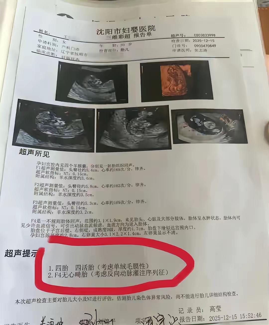 辽宁女子产检胎儿数一个月一个样。最新消息是王女士打算去上海安徽大医院复查,铁了心要保住这四份缘分。医生估计是同卵分裂叠加的罕见情况,概率堪比中彩票头奖。但有个宝宝情况不稳,像挂靠其他胎儿的小尾巴,可能拖累所有娃。减胎风险大容易全盘皆输。评论区说说你对这事咋看?